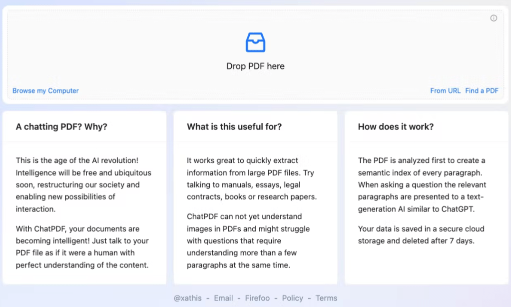 顾名思义,chatPDF 支持 PDF 的 AI 阅读,PDF 在很多场合都是一种常用的文件类型。对于海外很多公司或组织而言,没有PDF的话,简直不可思议。 论文,简历, 合同,申请表,手册,报告 …… 几乎万物皆可 PDF。 所以从 AI 阅读 PDF 入手,是一个很接地气的选择。