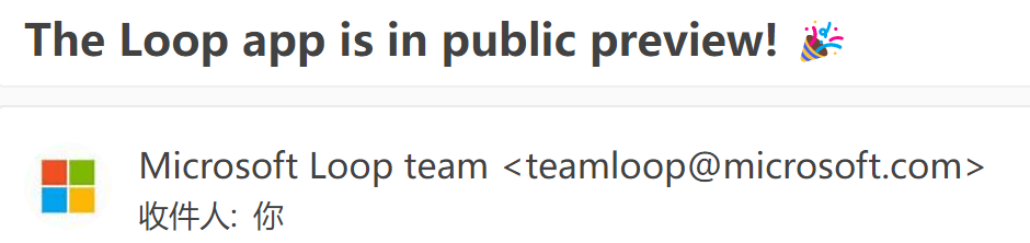 如果之前有注册过 Loop 的 预览测试, 并且进入 waitlist 的话, 那么现在就会收到一封邮件通知,提醒大家 Loop 公开预览开始,邀请用户登录到网页版 Microsoft 365,进入 Loop 的应用首页。