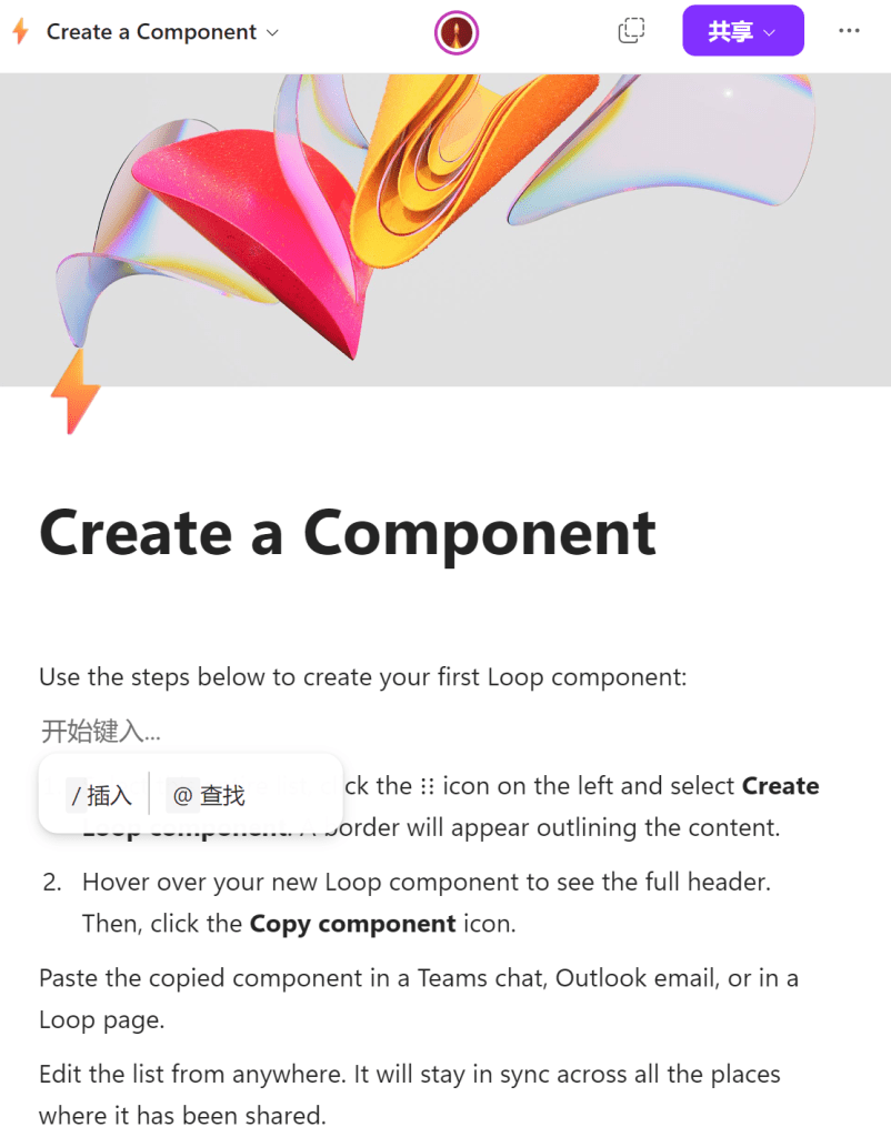 - 可以共享页面,可以将页面共享为 Loop 组件。(后面详细说)