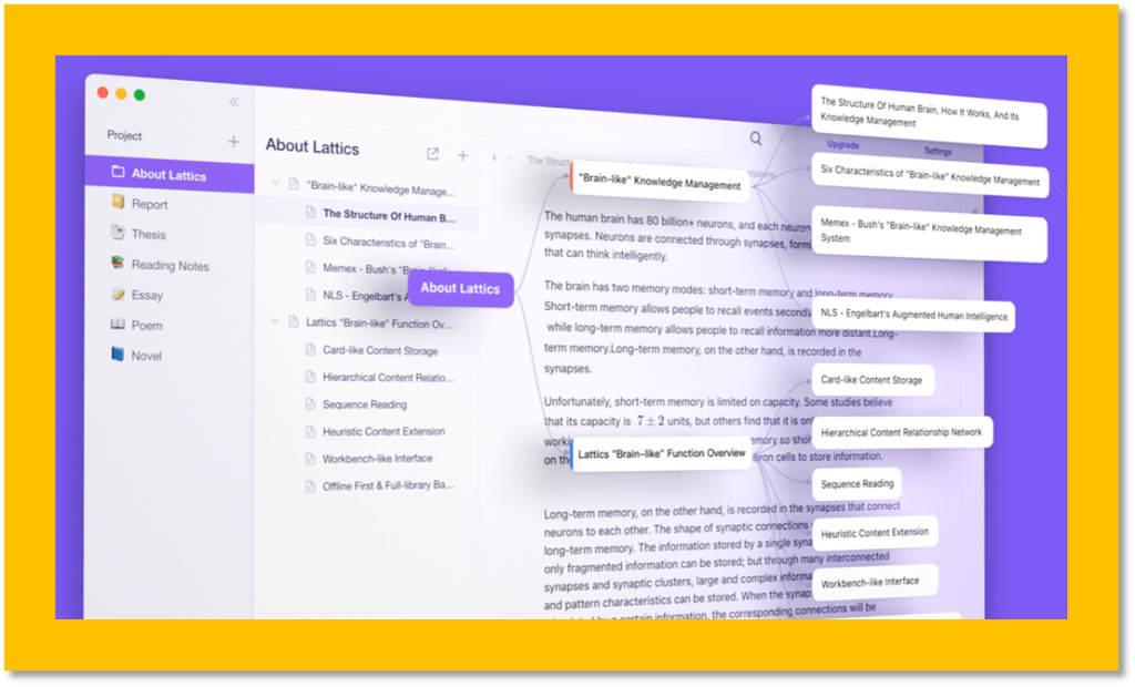 这款笔记工具自称为「类脑式」知识管理笔记与写作工具,我觉得其实是「补脑式」,至少工具尊重了人脑的地位,没有「僭越人脑」的意思。 工具的名称叫做 Lattics 。