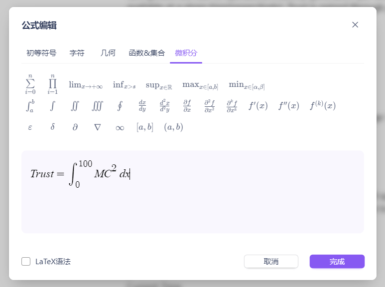 Lattics 支持 所见即所得的Markdown 编辑。 而且可以插入多种组件。 其中 LaTeX 和 公式编辑非常友好。 至于插入表格功能,远不能和 Notion 的 Database 相比较,仅仅是普通的表格而已。