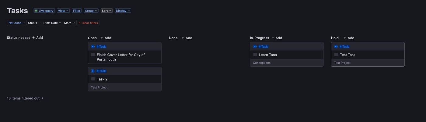 在Tana中,我们可以在 列表、看板、卡片视图或待办事项中查看这些相关节点。因此,可以轻松地以不同方式可视化您的数据。 (火箭君注:其实不是 graph 或 图形化 的那种意义的「可视化」)