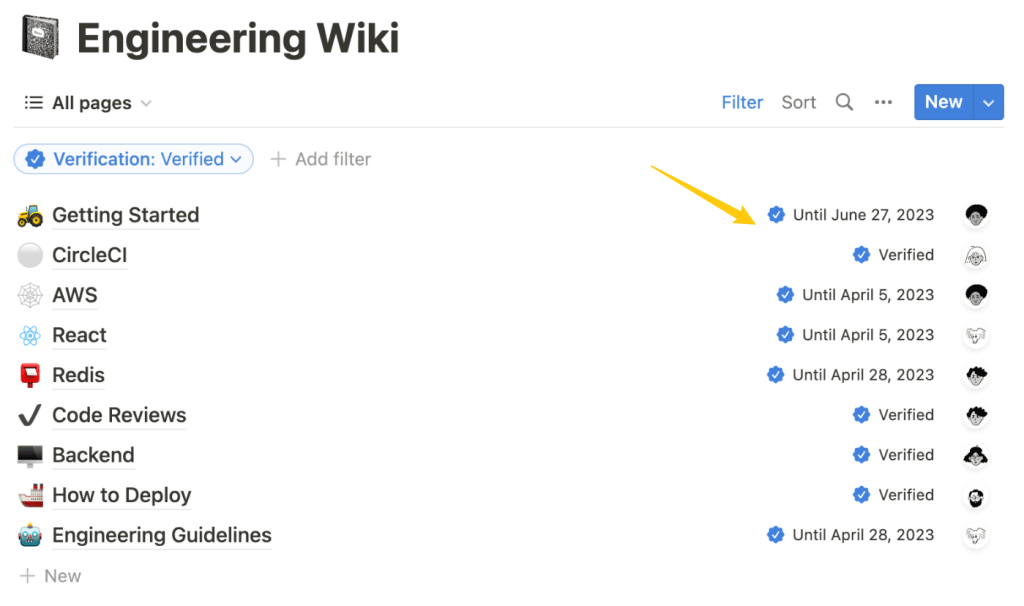 - 额外的, Notion 为这个 Database 提供了一个 「认证」的字段,表明 文章的有效性和权威性,也有点像保质期,或 Wiki 的审核制度。(效果见下图)