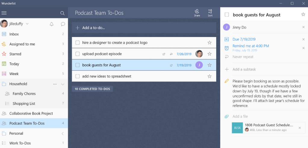 说到清单或时间管理工具,火箭君最早使用的是:WunderList(aka 奇妙清单,界面见下图)。 WunderList 后来微软收购,服务关闭,变成了 MS To-Do。于是,我转到了 Todoist 上,并用了很长时间。 直到这两年,才转到滴答清单,滴答算是一个 Todoist 的 平价替代品了吧。