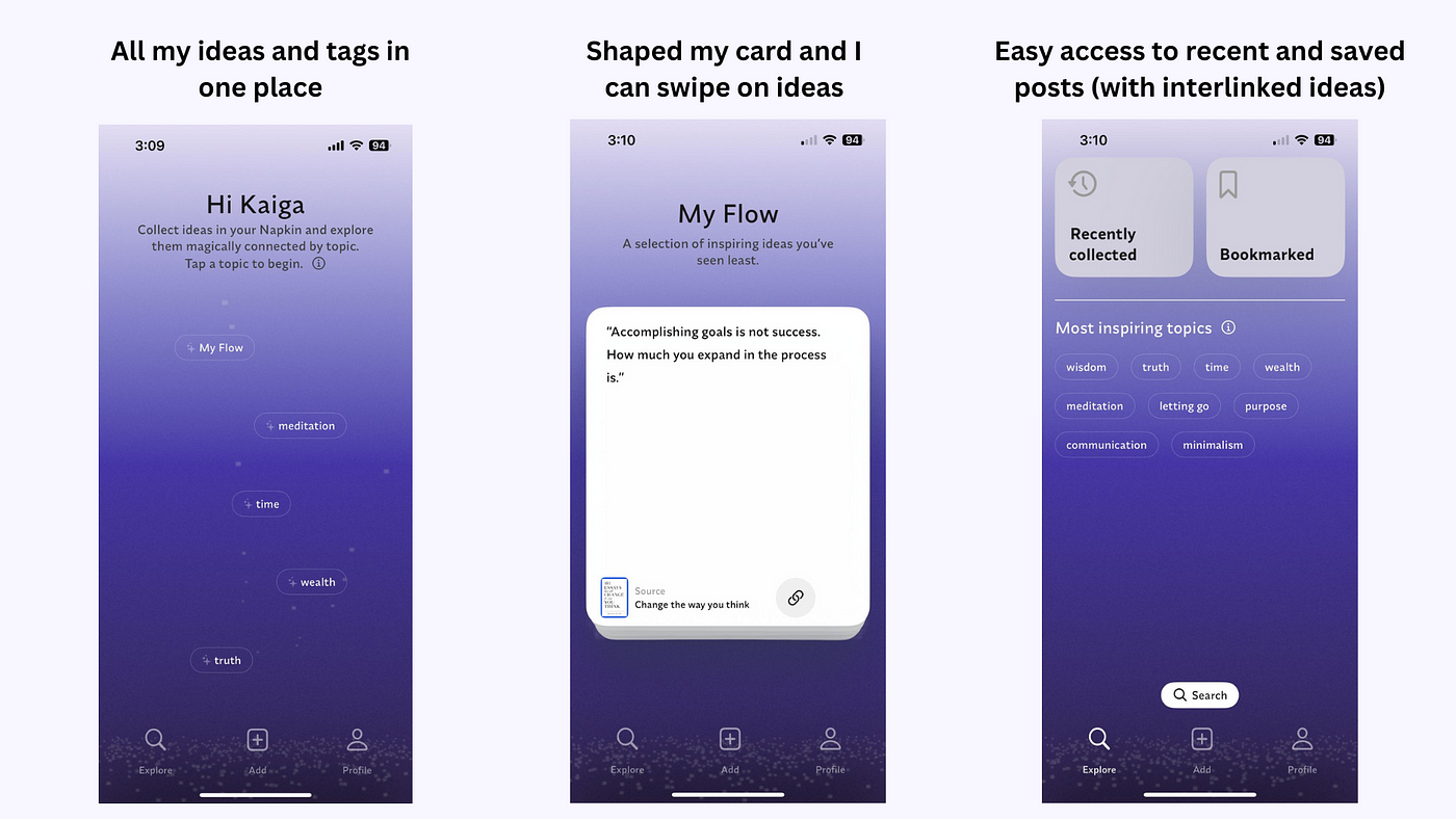 Napkin 让我忘记了所有现有的平台,如 Obsisian、Readwise 和 Evernote。如果我们喜欢保持自己的想法,Napkin 绝对适合我们!