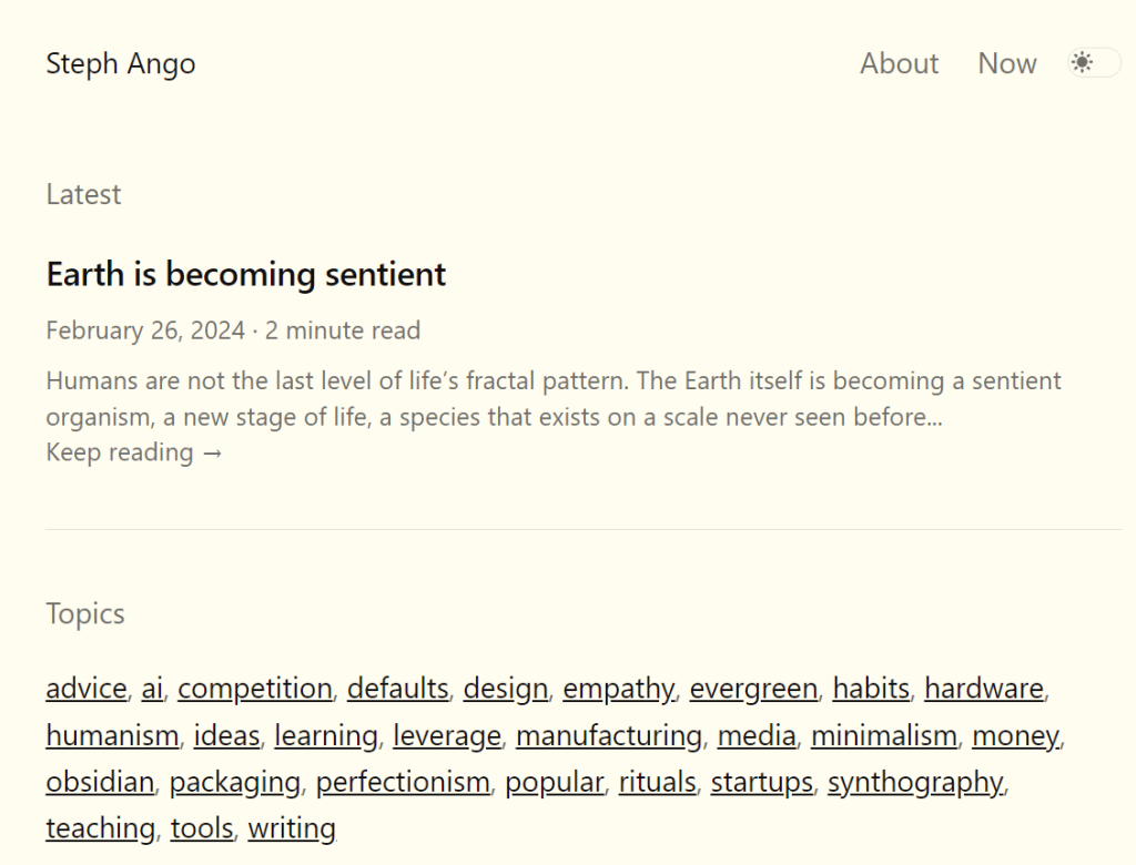 博客的颜色配置(调色板)是我专为本网站创建的 Flexoki。我的 Jekyll 模板不是公开的,但各位可以从 Maxime Vaillancourt 的此模板中获得类似的结果。还可以使用 Jekyll 的许多替代品来编译您的网站,例如 Quartz、Astro、Eleventy 和 Hugo。
