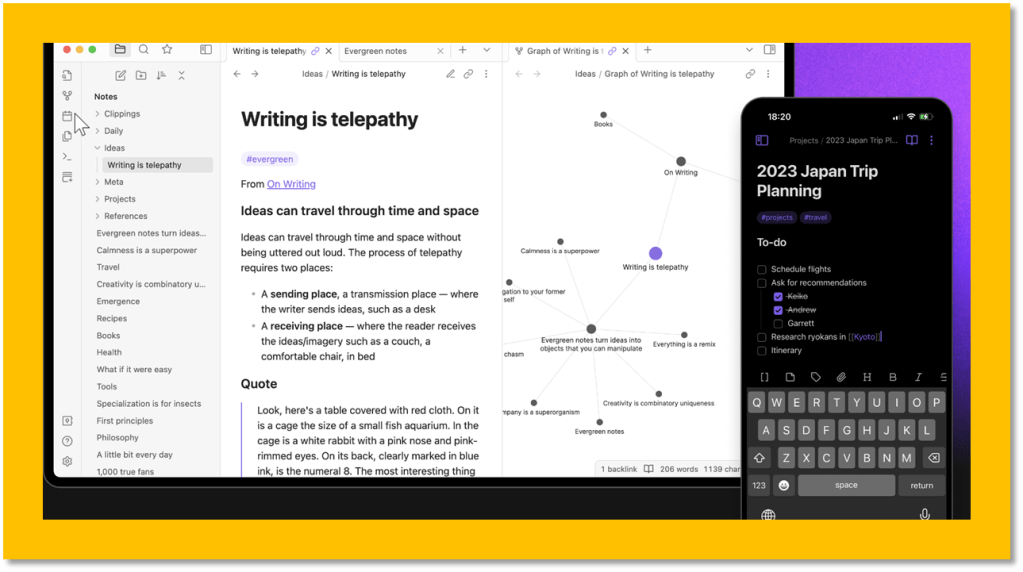 • Obsidian Sync 可在我的台式机、手机和平板电脑之间同步笔记