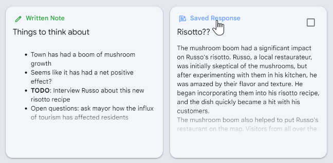 这种 被 pin 上来的 AI生成回答。被称为 「Saved Response」,和前面说的 「Written Note」 区别开来。