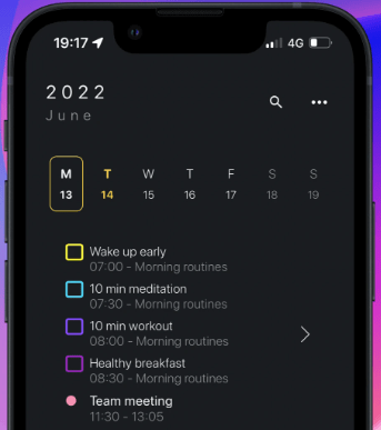 了然清单 提供了 4+4 两列式日历周视图界面,我个人觉得这是手机屏幕上最适合的日历的视图。
