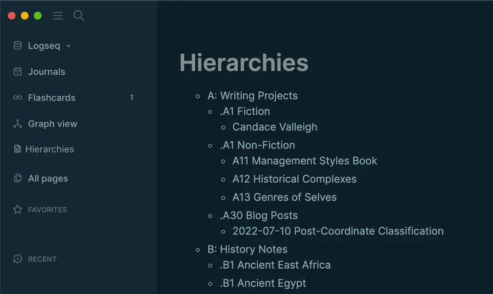 LogSeq(下图) 是早期的双链笔记工具代表作之一, 和 Obsidian 几乎出于同一时代。