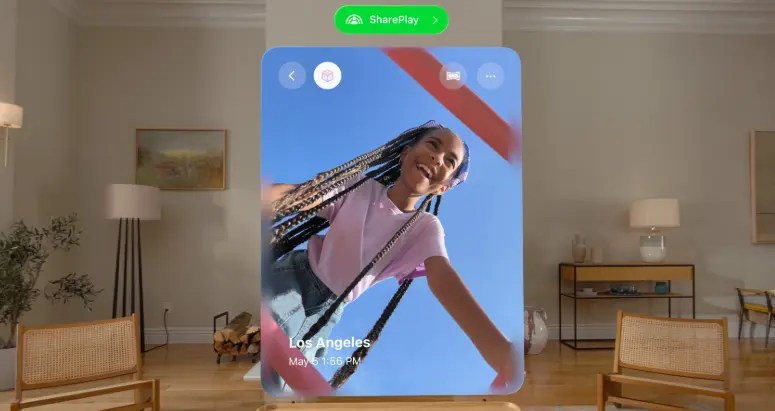 不过归根结底,这一切可能只是未来场景的一个过渡方案。 最终很可能是那种头戴式显示器解决以上所有问题。 考虑到 Vision Pro(效果如下图) 价格昂贵,佩戴体验等问题,可能还需要一些时间改善。 至于其它廉价的头戴显示设备,我只能说,效果很差,还是看桌面屏幕好多了。