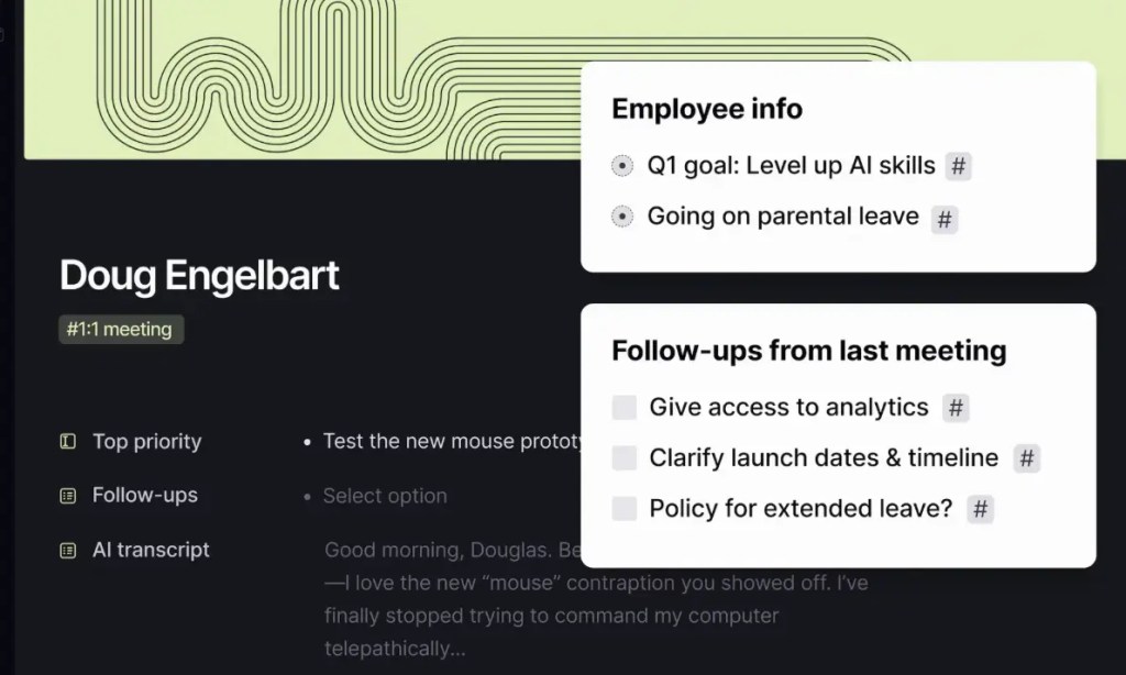 新 Tana 的野心不在于「帮我们记住会议」,毕竟会议记录的 AI 产品 太多甚至泛滥了,新 Tana 想做的是「开会时就把活干完」。看看口号 Meetings that ship,有点感觉了吧。